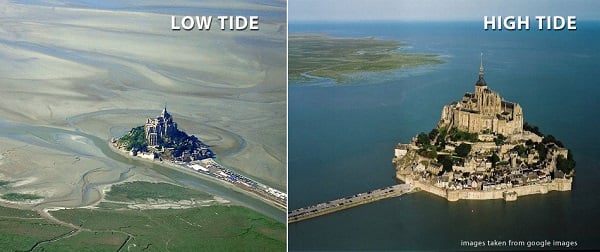 តើអ្នកមានធ្លាប់ដឹងទេថា St. Michael’s Mount ដែលសម្បូរទៅដោយព្រះវិហារ និងប្រាសាទដ៏ចំណាស់ជាច្រើននោះ មានផ្លូវលិចអស់ មិនអាចឆ្លងកាត់បានឡើយ នៅពេលទឹកជោរឡើង។