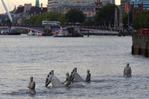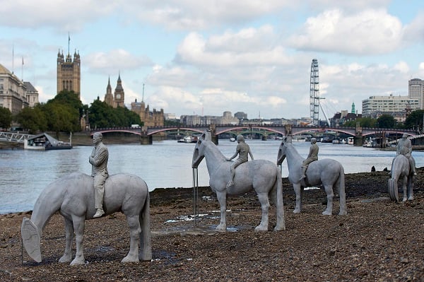 The Horsemen on the Thames (ឬត្រូវបានគេដាក់ឈ្មោះវាថា The Rising Tide) ត្រូវបានសាងសង់ឡើង នៅក្បែរស្ពាន Vauxhall ដោយស្នាដៃរបស់លោក Jason deCaires Taylor វ័យ ៤១ ឆ្នាំ។ លោកគឺជា អ្នកសិល្បៈដ៏មានឈ្មោះល្បីមួយរូប ដែលភាពច្រើនមានគេស្គាល់ច្រើន ដោយសារតែលោកជាអ្នកបង្កើតសារមន្ទីរក្រោមទឹកដំបូងគេក្នុងទីក្រុង Cancun និងក្នុងប្រទេស Bahamas ។